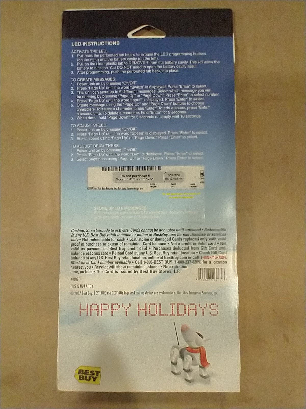 The purpose of this is to reverse engineer a gift card that has a scrolling marquee made out of a matrix of LEDs. The end goal of this is to eventually get a display that can be connected to a microcontroller. These gift cards were acquired around 2007 by purchasing them with small amounts of money on them.