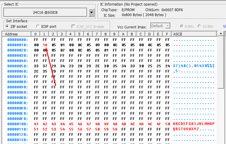- Power down device, remove EEPROM and read EEPROM using TL866II reader/programmer