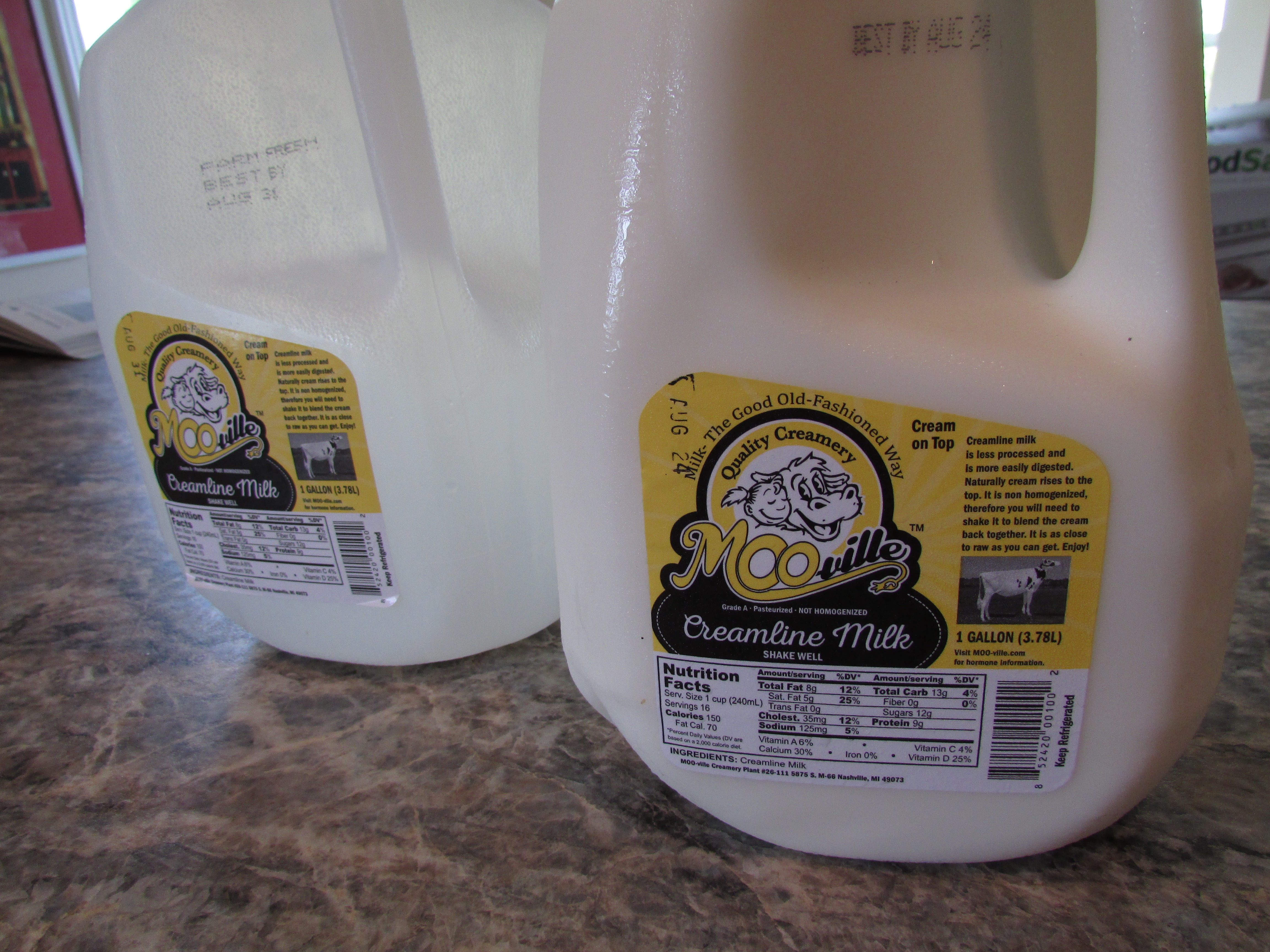 Creamline Milk from Mooville Milk. This milk has better yield then normal pasteurized milk from the grocery store.